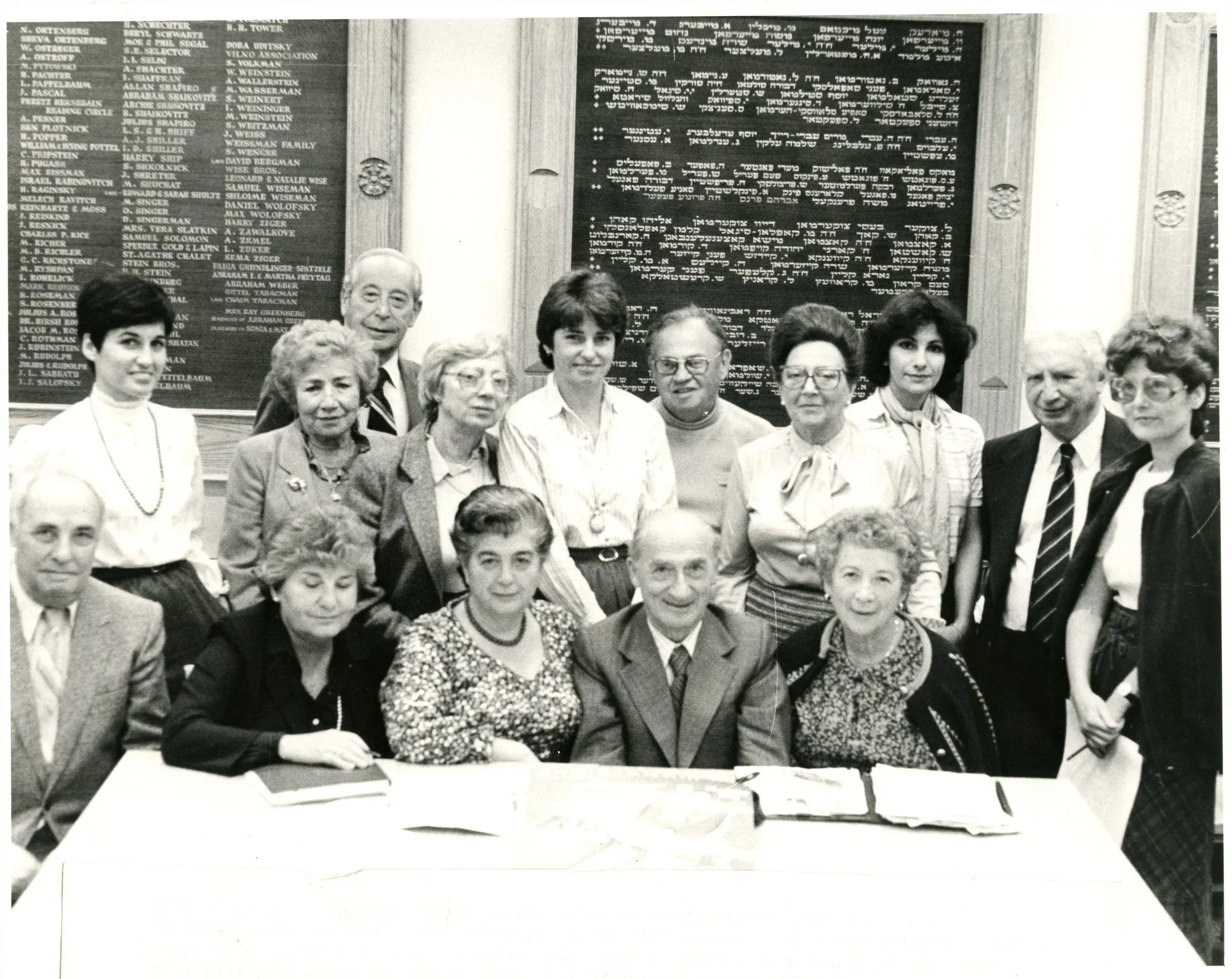 Group portrait of the Committee for Jewish Book Month at the Jewish Public Library, 1982. JPL Archives, Photograph Collection, ID: 1255-[83-008]-PR000373.